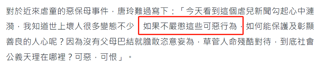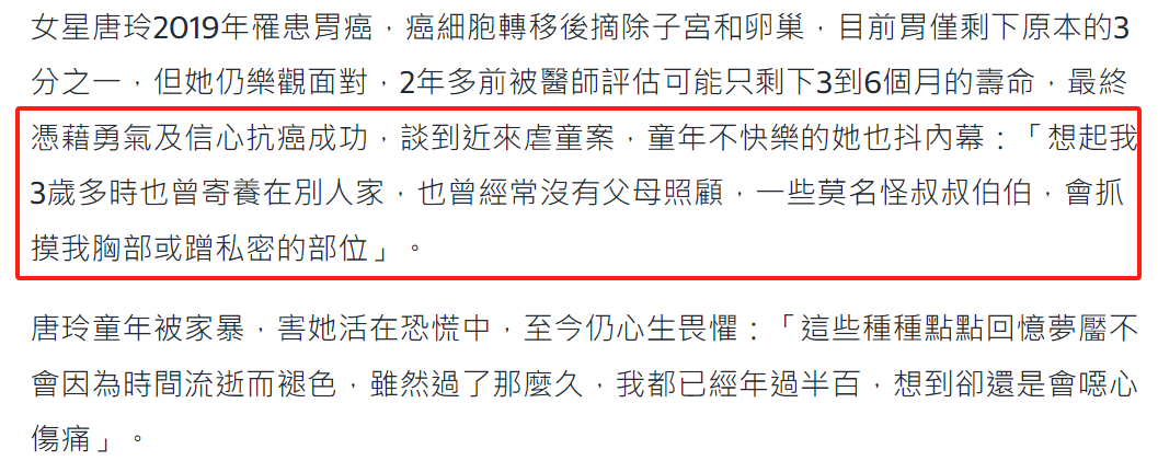 如今唐玲年过半百,被虐童案再一次勾起心伤,以为又恶心又愁肠,发声但愿能够重办这些伤害儿童的东谈主。