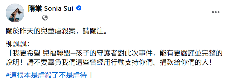 其实,这也不是台湾省第一次曝出虐童案,却是第一次激发多量明星发声,亦然因为案件性质太过恶劣,被虐男童家庭情况更是复杂,父母根柢莫得才调为他讨回公平,明星发声如故值得饱读动的。